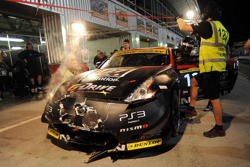 El 370Z tuneado especial demostró ser rápido y logró la pole y el segundo lugar en la clasificatoria de la clase SP3, lo que permitió al equipo comenzar desde la mejor posición posible. El 11 de enero a las 14:00 hora local, comenzó la carrera final con el coche 147 situándose en cabeza. Sin embargo, la piloto inicial, Sabine, se vio involucrada en un accidente justo antes de que se cambiara de conductor y cayó en la clasificación. Entretanto, el coche 127 daba vueltas sin incidentes cuando, justo pasadas las 18:00, se le salió un neumático al BMW que iba por delante y golpeó la parte frontal de coche conducido por Wolfgang. Esto obligó al equipo a pasar casi una hora en boxes reparándolo.