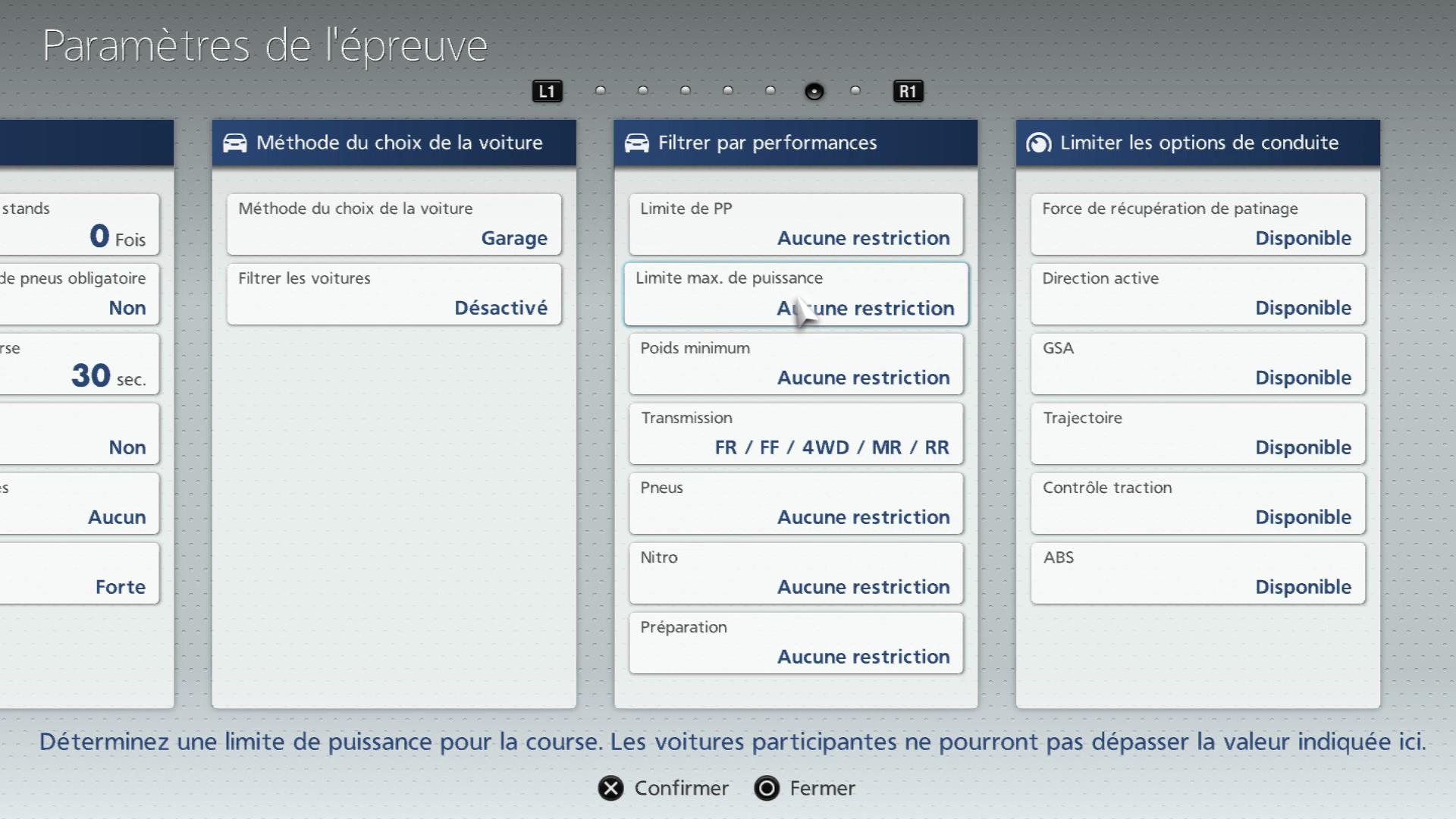 Attribuez une limite aux Points de Performance. Les voitures dépassant cette limite ne pourront pas participer.
