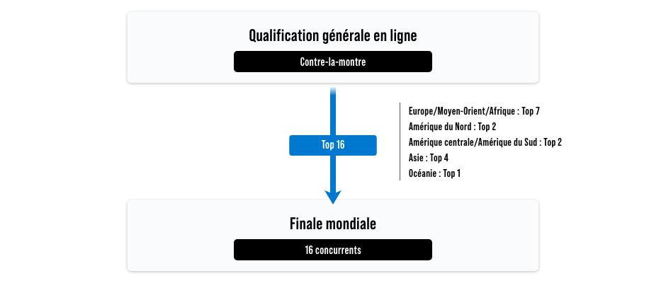 Les pilotes les mieux classés à l'issue de la qualification générale en ligne accéderont à la finale.