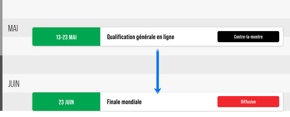- (Les dates seront communiquées directement aux concurrents de la finale mondiale.)