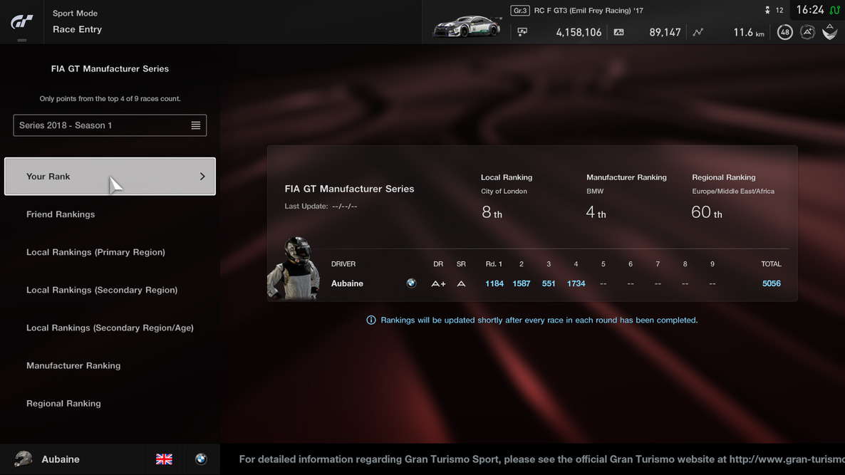 Une page d'Inscription de joueur sera ajoutée au mode Sport. Saisissez votre adresse pour accéder au classement de votre région sur l'écran du Championnat.