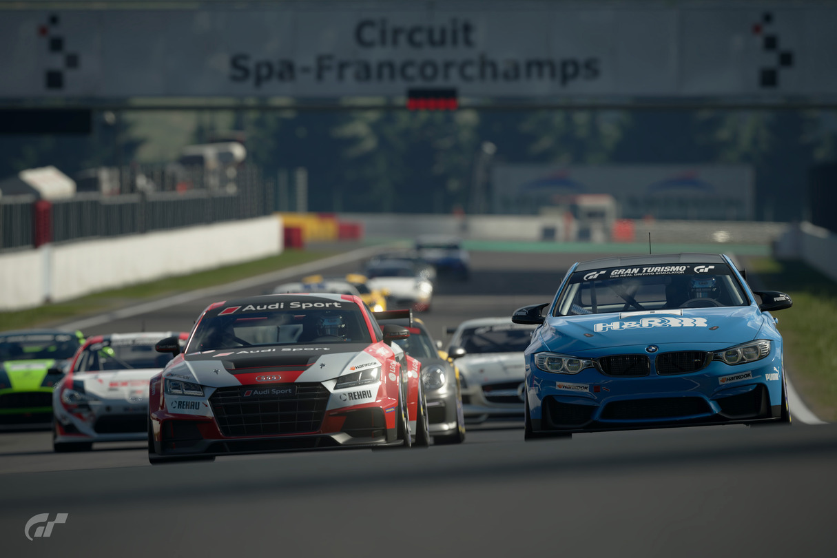 It was clear from the qualifying round which teams were going to be the fastest, as BMW, Audi, Porsche, Mercedes-Benz, and Toyota all looked to have just a little bit more speed than the others. BMW had claimed pole for the maiden race, which was held at the famous Circuit de Spa-Francorchamps in Belgium. The 12-lap sprint in Gr.4 cars would be decided on which team employed the best tyre strategy, as BMW opted to start on the medium-compound tyres, while Audi and Porsche went with the softs. The action started as soon as the green flag dropped, with Martin Grady (UK) in the Audi TT Cup shooting his way past Chile’s Nico Rubilar’s BMW M4 through the first corner, followed by Angel Inostroza (Chile) in the Porsche Cayman GT4 Clubsport. The Mercedes-Benz SLS AMG, with Anthony Felix (U.S.) behind the wheel, had a disastrous start as it got caught in heavy traffic and was nudged off the track, dropping down two places before the first corner.