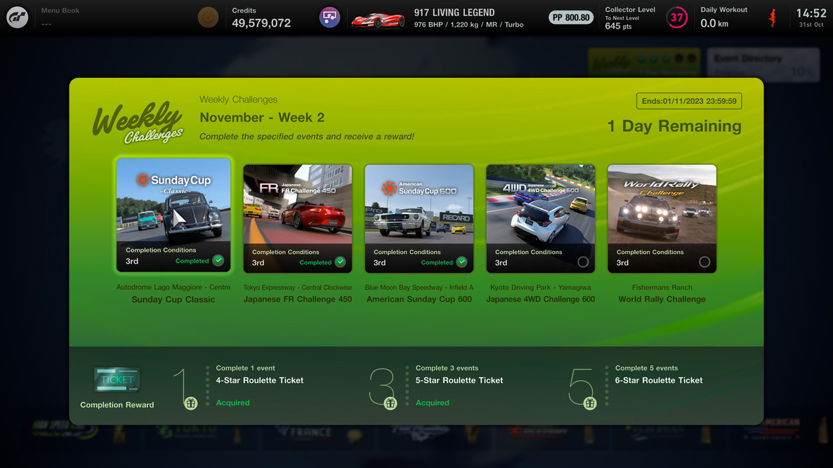 Weekly Challenges, available after having watched the ending, is a new mode that offers a variety of weekly race events for players to test their skills against. Completing all these events, hand-picked from current World Circuits events along with all-new race events, will earn players a special reward.