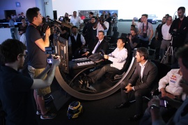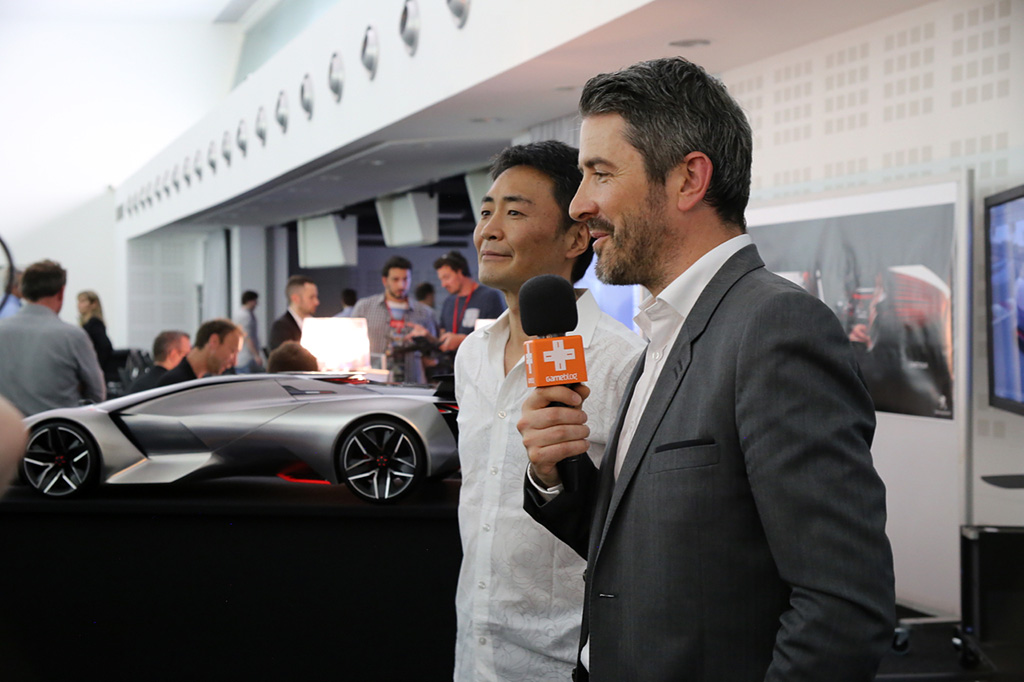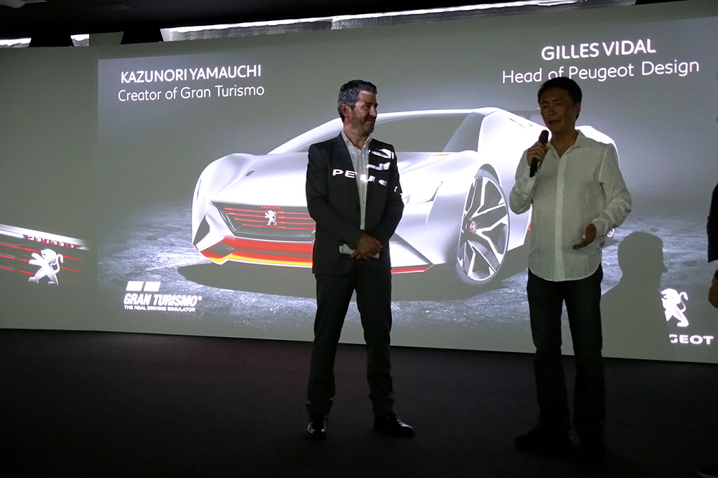 Head of PEUGEOT Design Gilles Vidal gave greetings, and invited Gran Turismo series producer Kazunori Yamauchi to speak on stage. Followed by words from the PEUGEOT Brand CEO Maxime Picat, Kazunori also made a demonstration run with the PEUGEOT Gran Turismo on Gran Turismo 6.