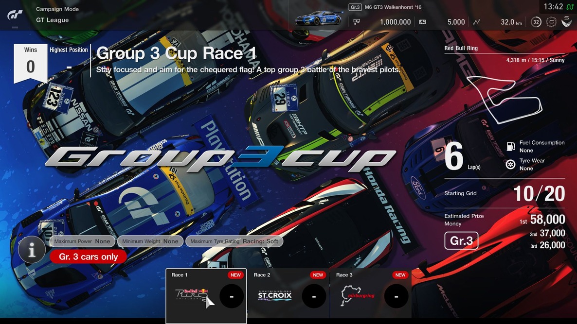 In addition, new races have been added to the following events: Mazda Roadsters Cup (Beginner League), Red Bull X Jr. Series (Amateur League), Lamborghini Cup (Professional League), and the Gr.1 Prototype Endurance Series (Endurance League).
