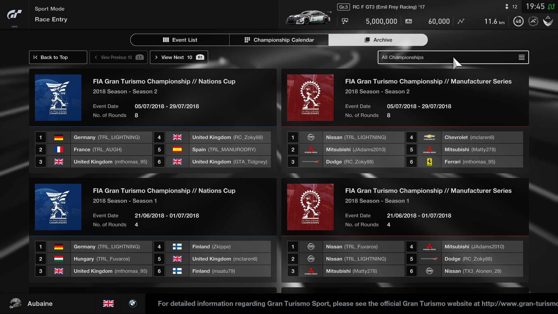 3. The following 3 events will be added to the 'GT League':