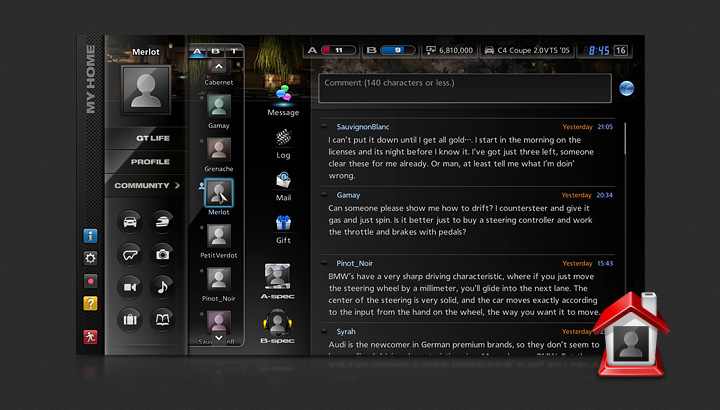 There are three modes that make up My Home, including "GT LIFE", "Profiles", and "Community". Of these, we will go over the newly announced community aspect here.