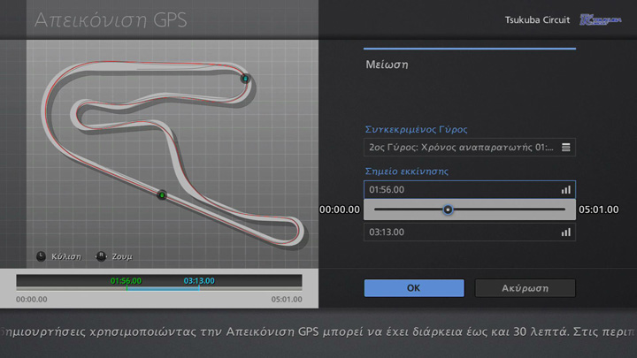 Η ελάχιστη διάρκεια μιας αναπαραγωγής που μπορεί να δημιουργηθεί χρησιμοποιώντας την Απεικόνιση GPS είναι 1 λεπτό, ενώ η μέγιστη διάρκεια είναι 30 λεπτά. Στις περιπτώσεις που τα δεδομένα GPS ξεπερνούν τα 30 λεπτά, επιλέξτε «Μείωση» για να εξαγάγετε το τμήμα που θέλετε.