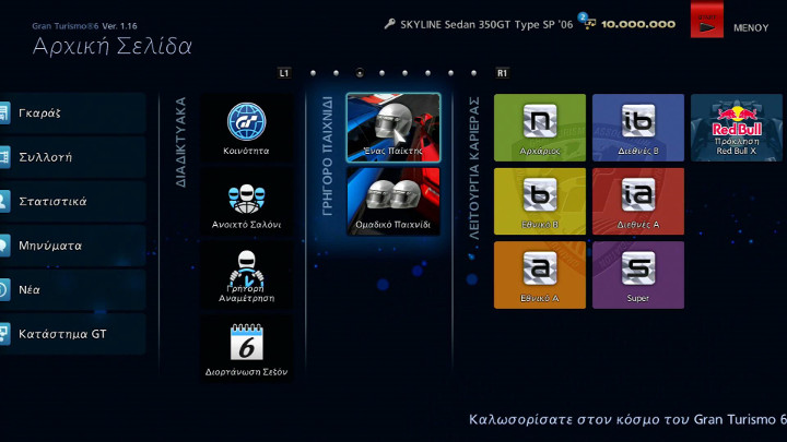 Στη λειτουργία Ένας Παίκτης μπορείτε να απολαύσετε μια οδηγική εμπειρία με εύκολο τρόπο. Μπορείτε να επιλέξετε έναν από τους παρακάτω τύπους αγώνα: