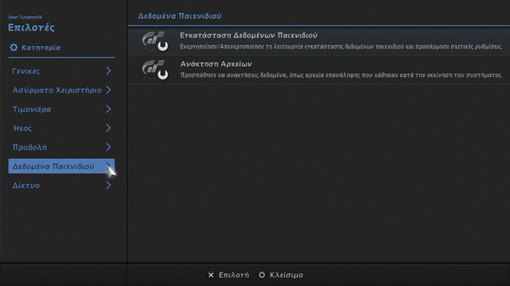 Μπορείτε να προσαρμόσετε τις παρακάτω ρυθμίσεις που σχετίζονται με τα δεδομένα παιχνιδιού: