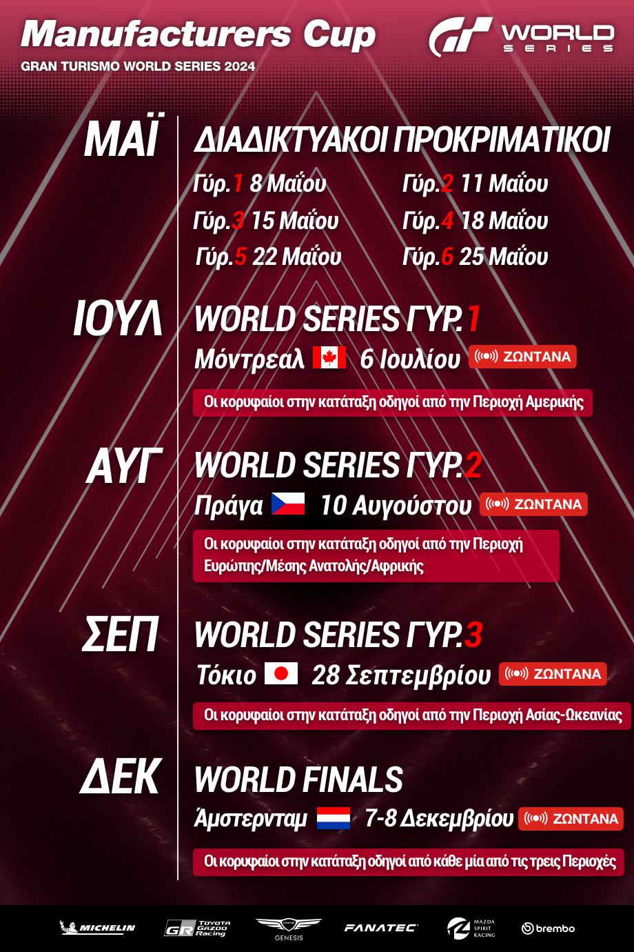 Είναι μια παγκόσμια ζωντανή διοργάνωση που θα καθορίσει τους νικητές αυτής της χρονιάς για τα Gran Turismo World Series Γύροι 1-3.