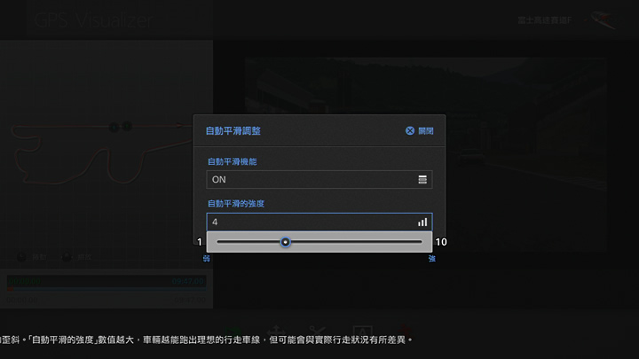 「自動平滑的強度」數值越大,車輛越能跑出理想的行走車線,但可能會與實際行走狀況有所差異。