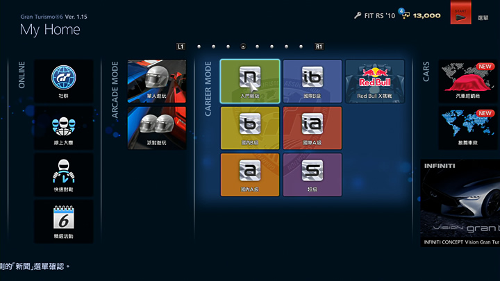 挑戰競賽獲得執照,再挑戰更高層次的競賽。逐漸提升階級的進行方式就是生涯模式。