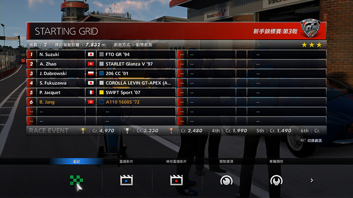 - 開始AI駕駛員自動操縱的競賽。會顯示於生涯模式的活動競賽當中。