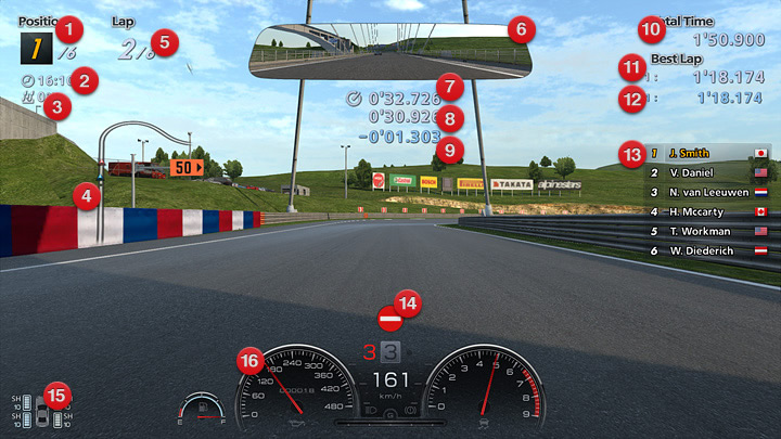 競賽及重播影片中按下SELECT 按鈕能切換視點。觀看重播影片時選擇[切換視點]並按下決定亦可切換視點。