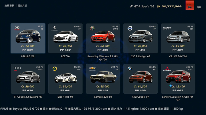 各車輛的性能點可在車商確認。車庫或車輛調校畫面上,會反映車輛調校的結果,顯示目前的性能點。
