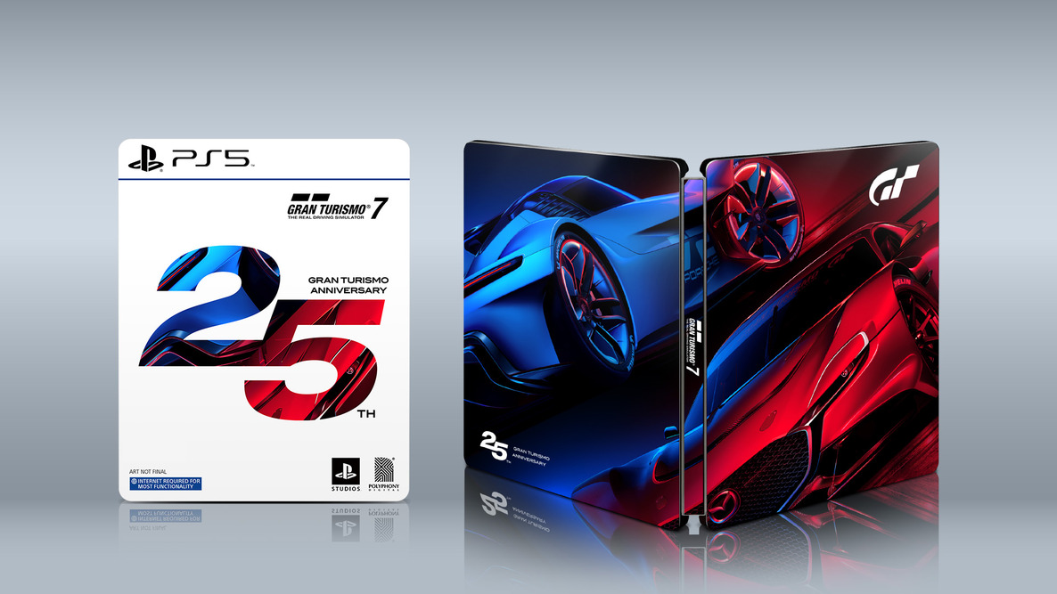 This is a specially sleeved and packaged Gran Turismo 7 version commemorating the 25th anniversary of the Gran Turismo Series. It comes with a metal 'SteelBook®' case to securely preserve your copy of Gran Turismo 7.