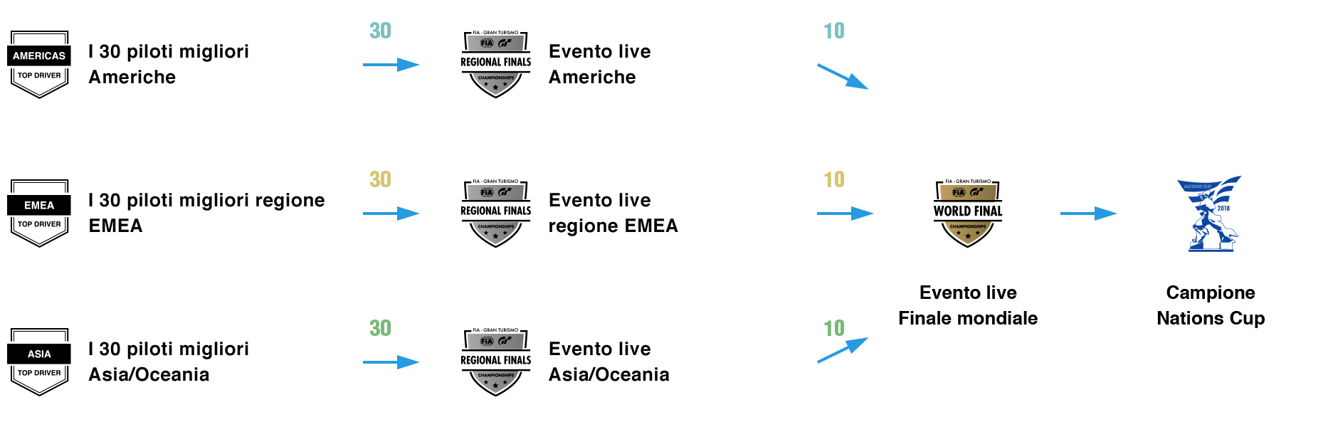 La Nations Cup prevede una "Finale regionale" che si terrà in ciascuna regione per determinarne il leader.