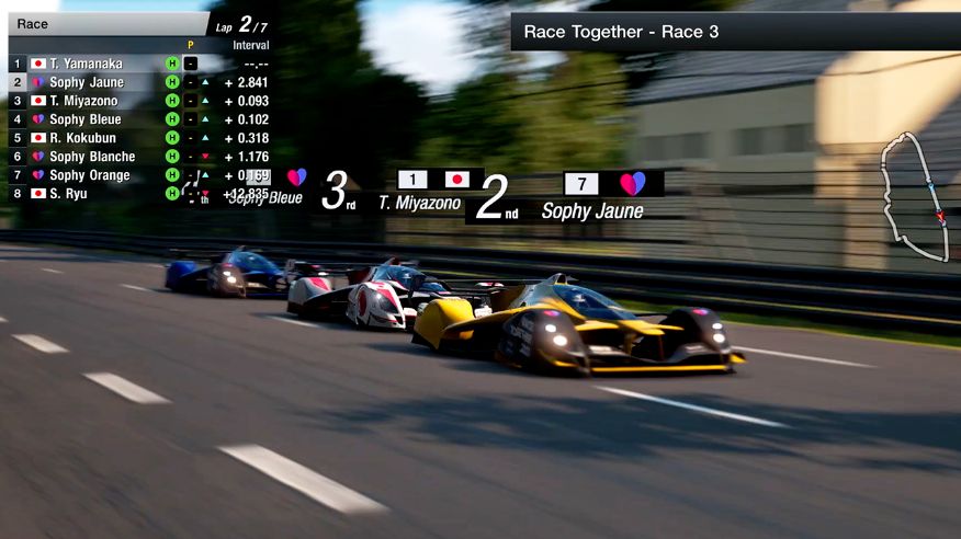 異なるコースと車種の組み合わせで全3回のレースが行われ、各レースに4体のGT Sophyが参加。それぞれのGT Sophyには、車体のカラーリングにちなんだ名前が与えられました。