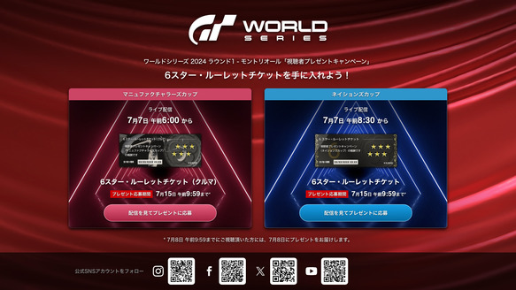 カナダ・モントリオール(現地時間2024年7月6日)- カナダの美しい都市モントリオールにて、グランツーリスモ ワールドシリーズ・ライブイベントの新シーズンが開幕。エキサイティングなマニュファクチャラーズカップに続く待望のネイションズカップで、各国の選手が競い合いました。今年は再び個人戦のフォーマットで、オンライン予選で選ばれた12人のドライバーが、3つのワールドシリーズ・ライブイベント(モントリオール、プラハ、東京)とワールドファイナルに出場します。まずは第1戦。新シーズンのペースを握るのは誰なのか?『グランツーリスモ7』最速のドライバーたちが、会場となったUsine Cシアターの満員の観客...