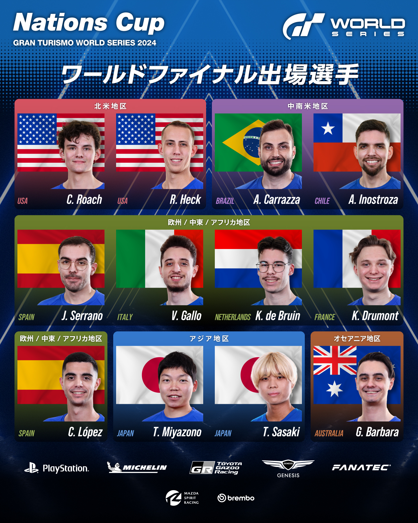 ワールドファイナルでは、TOYOTA GAZOO Racing GT Cupが12月7日(土)16:00から17:30(CET)に、マニュファクチャラーズカップが同日19:00から21:00(CET)に、ネイションズカップは12月8日(日)16:00(CET)より開催されます。