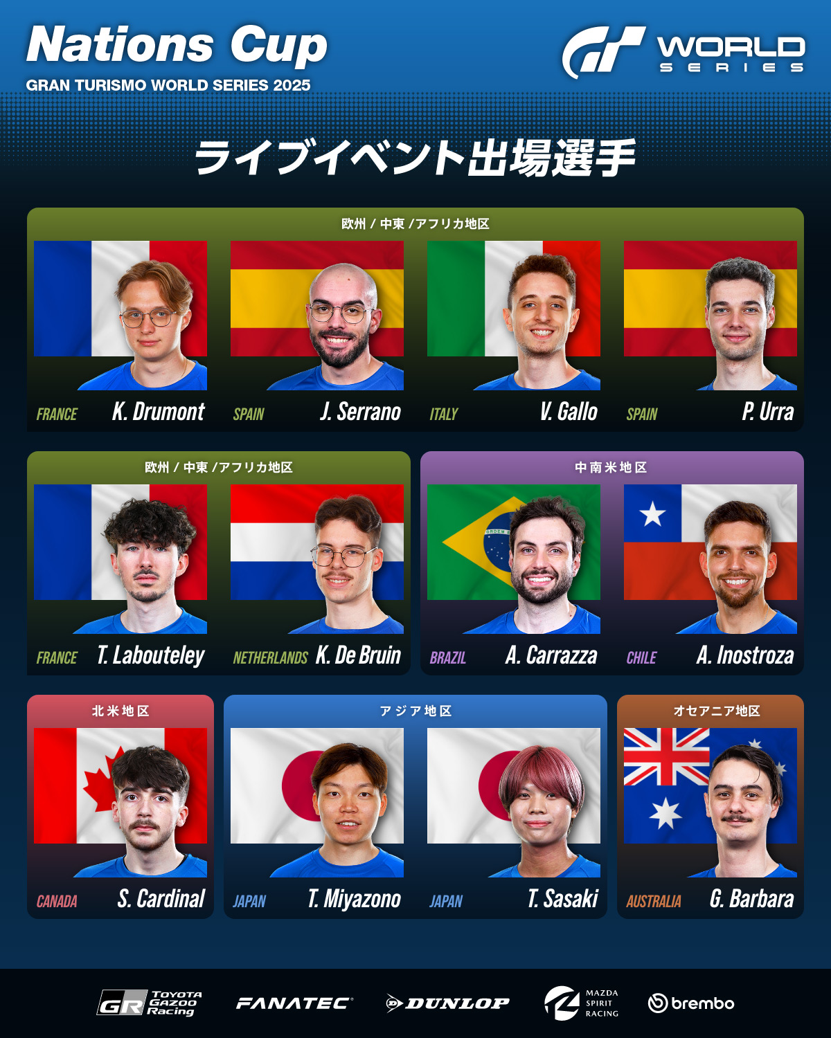 今年のワールドファイナルは、「ジャパンモビリティショー 福岡 2025(12月18日~21日 マリンメッセ福岡)」と同時開催。その会場からもほど近い福岡国際会議場に、世界各地から選ばれた12名のネイションズカップ出場選手、そしてマニュファクチャラーズカップに出場する全12チーム・36名の代表選手が集い、戦います。