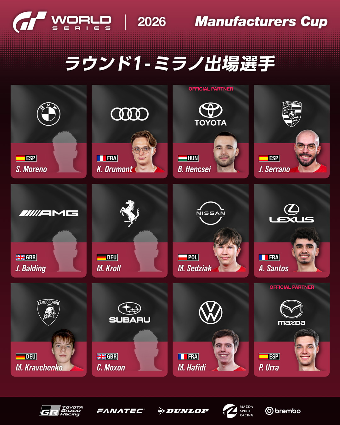 各マニュファクチャラーの代表選手は欧州/中東/アフリカ地区、北米/中南米地区、アジア/オセアニア地区それぞれのオンライン予選でトップを獲得した3名。「ラウンド1 - ミラノ」には欧州/中東/アフリカ地区の選手が出場します。