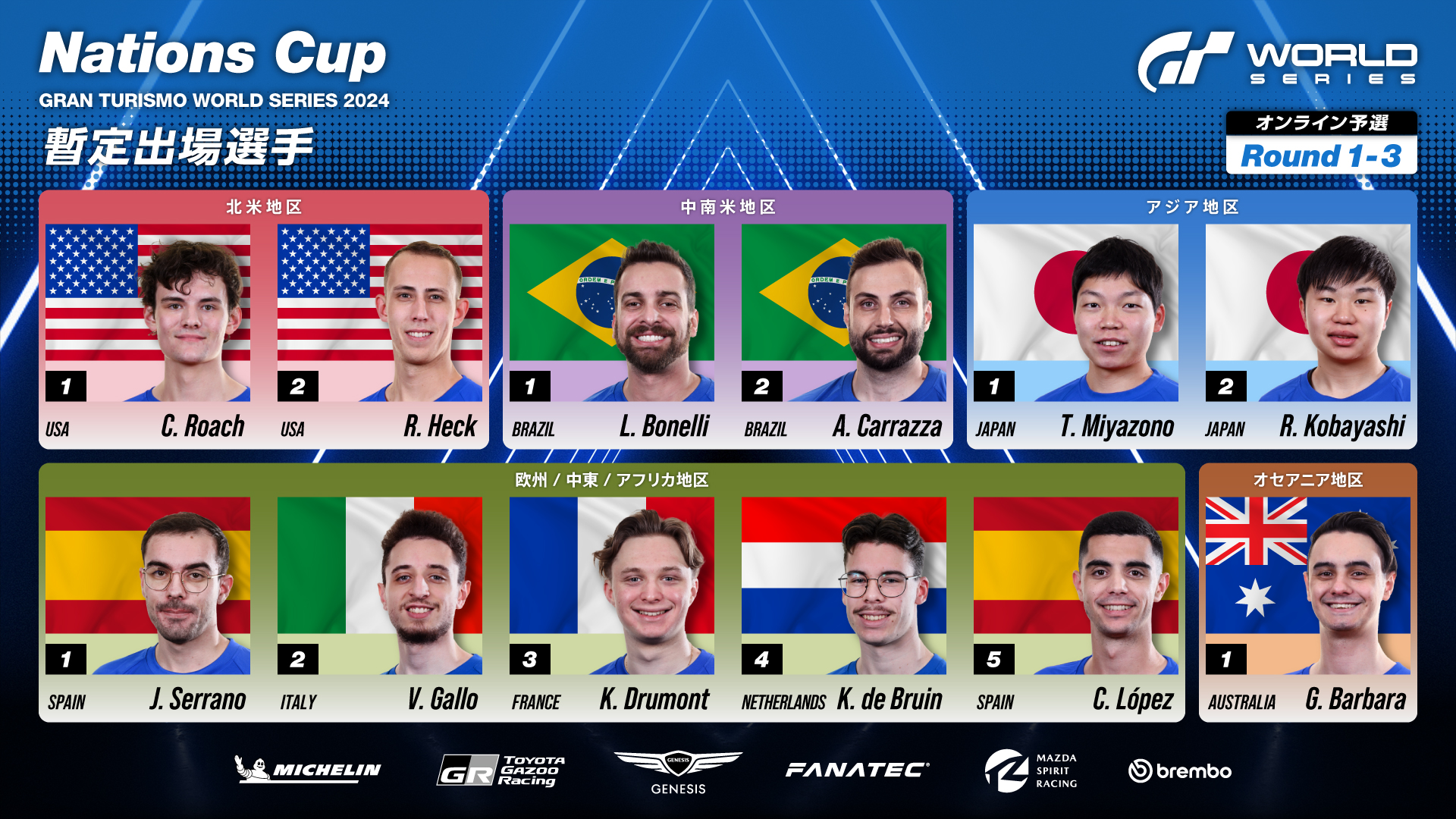 「ワールドシリーズ 2024 オンライン予選 - ネイションズカップ」暫定出場選手