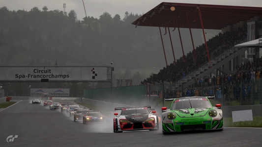 シリーズのファイナルレースは消耗戦となります。スパ・フランコルシャンでの30ラップのレースは雨に見舞われるとの気象予報だったため、各チームは戦略の再調整を余儀なくされます。ポールポジションは前戦優勝のポルシェ 911 RSR (991)の佐々木拓眞選手、2番手はトヨタ GRスープラ レーシングコンセプトのイゴール・フラガ選手。セカンドローにはメルセデス AMG GT3のルーカス・ボネリ選手、そしてフォルクスワーゲン ビートル Gr.3の鈴木聖弥選手が並びました。