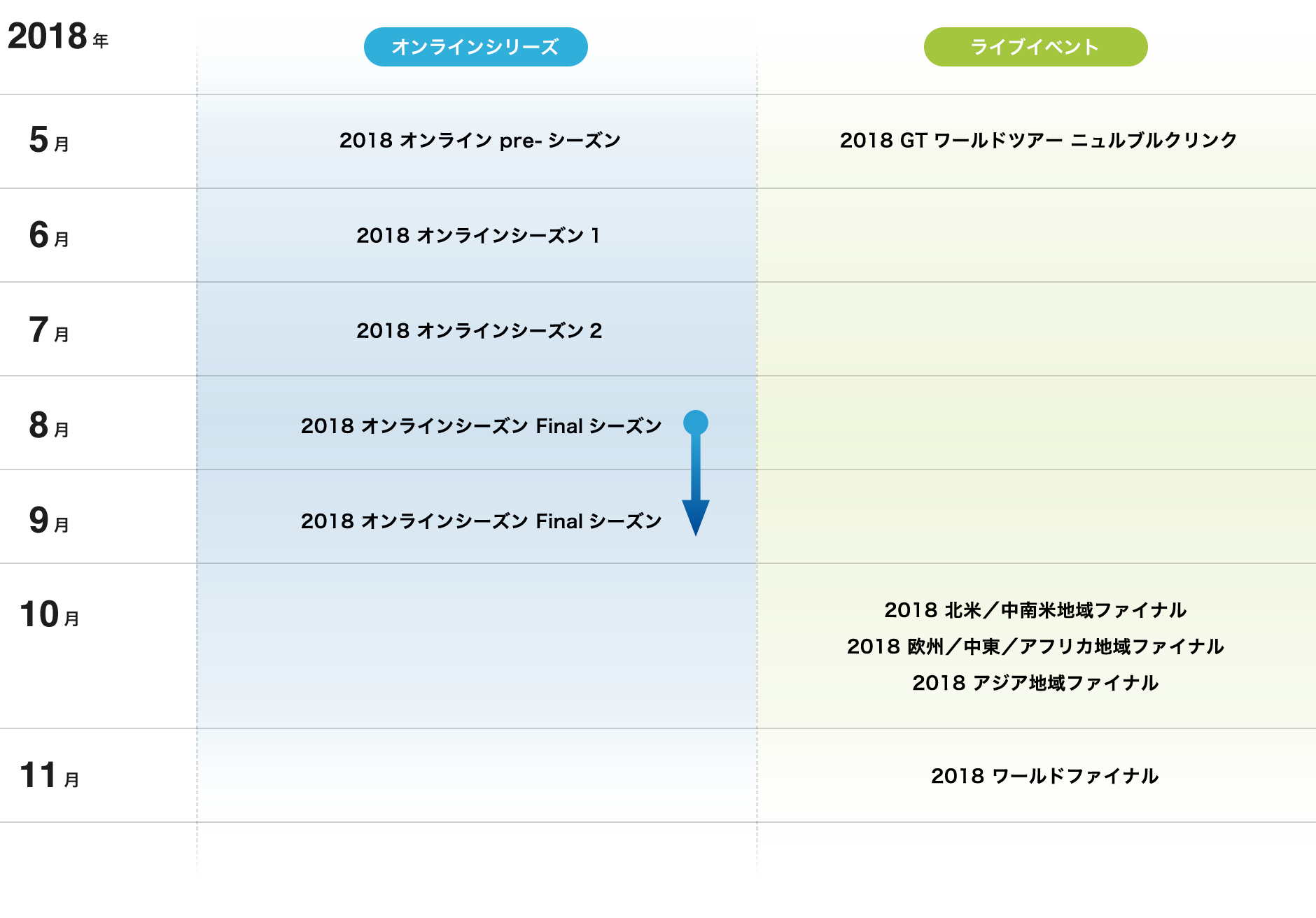 | プレシーズン レース日程 | シーズン1 レース日程 | シーズン2 レース日程 | ファイナルシーズン レース日程 | |