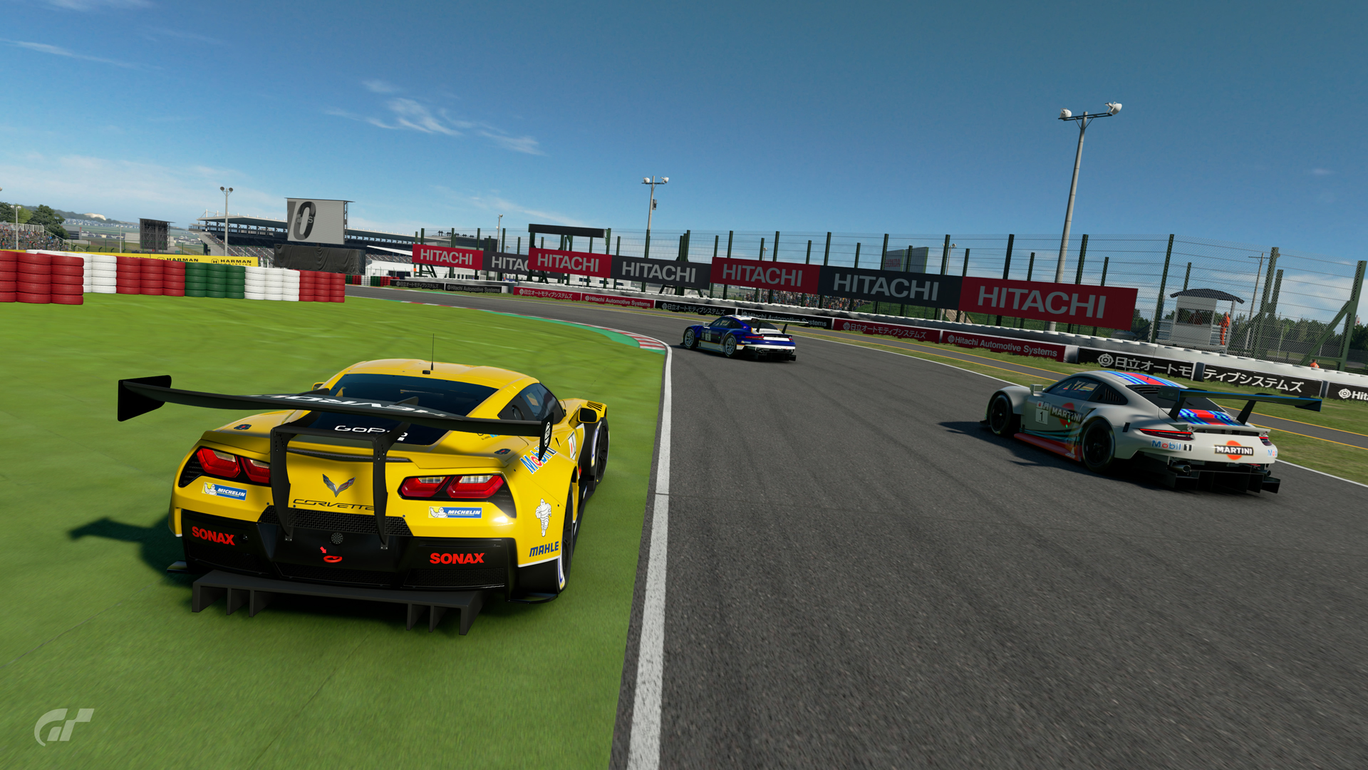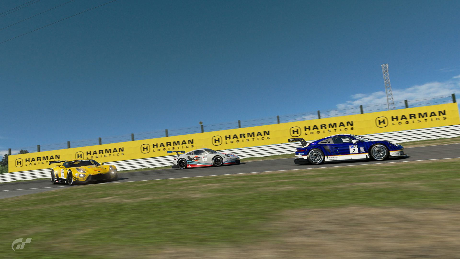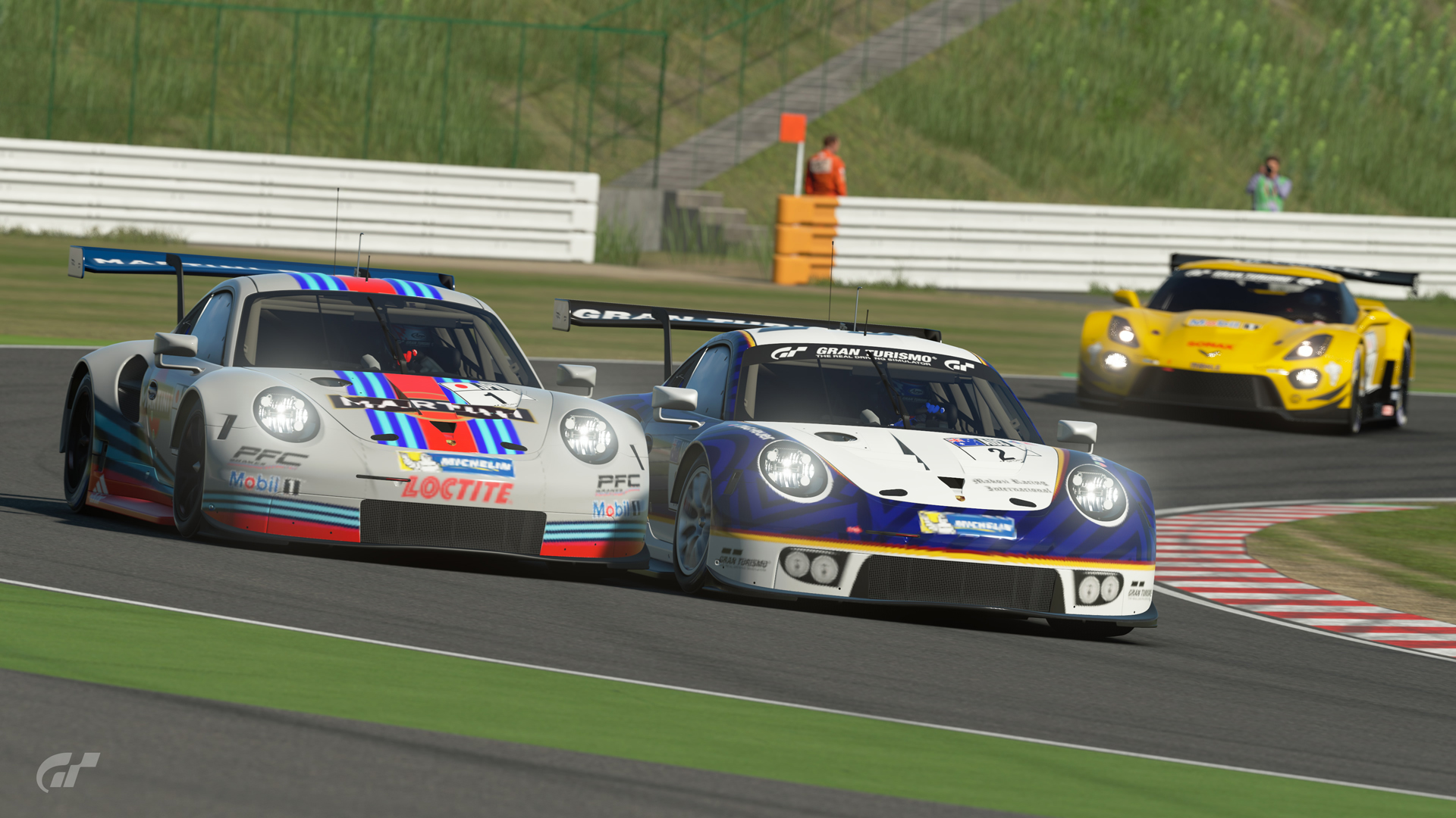 コース幅いっぱいまでブロックラインを取るNik_Makozi選手を、130Rのアプローチでアウトから豪快にオーバーテイク。