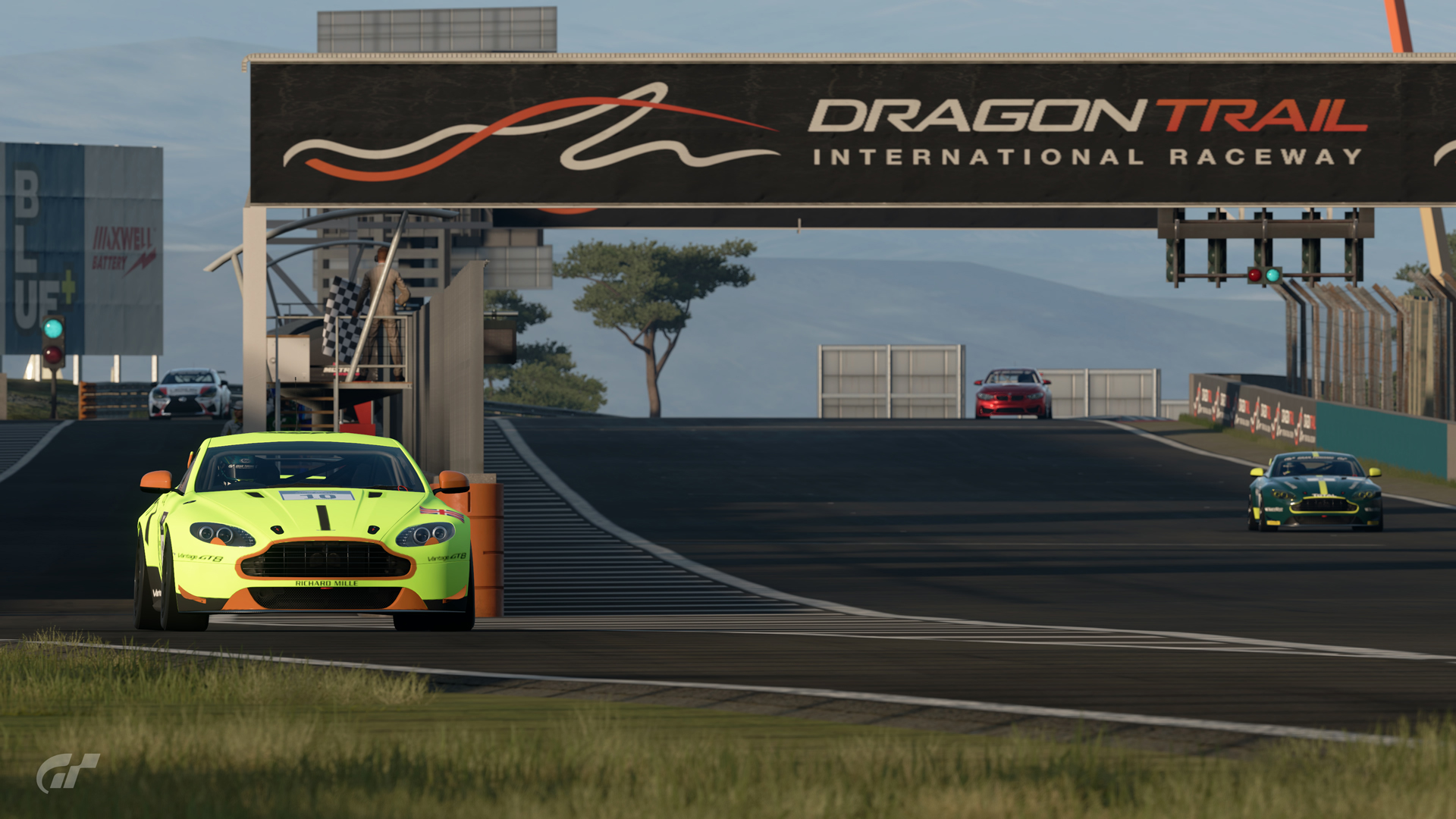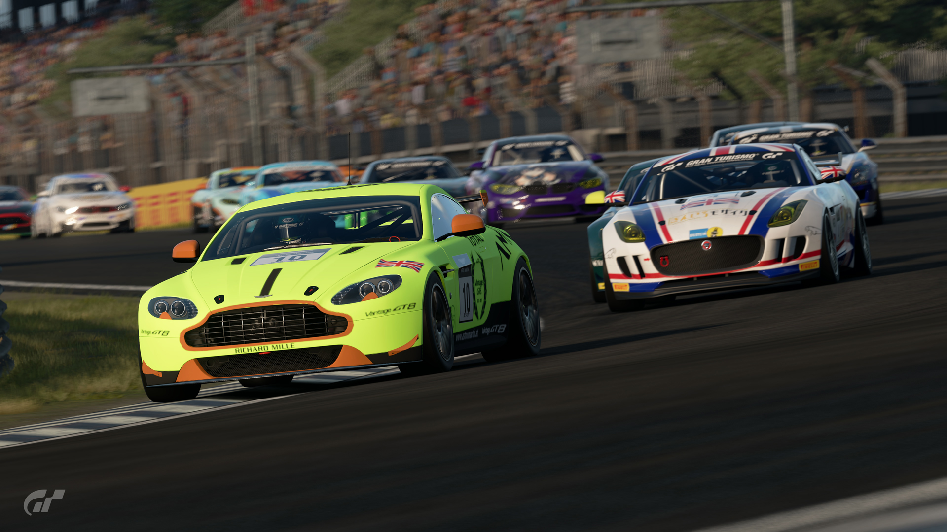 アストンマーティン・kuro96GT選手がポールポジションを獲得し、1周目から2位以下との距離を広げにかかります。
