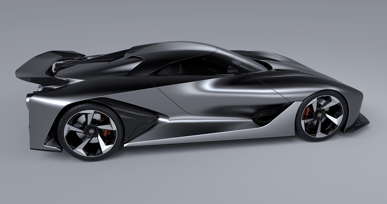 日産はその80年に及ぶ歴史の中で、つねにスポーツドライビングの可能性を探ってきた。特にグランドツーリングを志向したGTカーにおいては、他の追随を許さない絶対的パフォーマンスと、日常域の快適性を両立し、独自のブランドを築いてきた。そしてここに来るべき近未来をイメージした次世代のGTコンセプト、「NISSAN CONCEPT 2020 Vision Gran Turismo(日産コンセプト2020 ビジョン グランツーリスモ)」を登場させる。デジタルの開発環境によって、デザイン表現、開発プロセスは革新的な進化をしている。デザイナーが、よりスピーディにその直観を表現できる環境が揃いつつある昨今、彼らのイマジネーションは「グランツーリスモ」というバーチャル上の環境へ、そのあるべき姿を具現化する可能性を見出した。英国の若手デザイナーたちによってバーチャルモデリングされたスタイリングスタディが、日本の開発拠点にいる若手エンジニアの魂を刺激し、国境をまたいだ各種の技術的検討、シミュレーションがなされ、今回「ビジョン グランツーリスモ」プロジェクトとして、その3Dモデル上のエンジンに火を灯すこととなった。