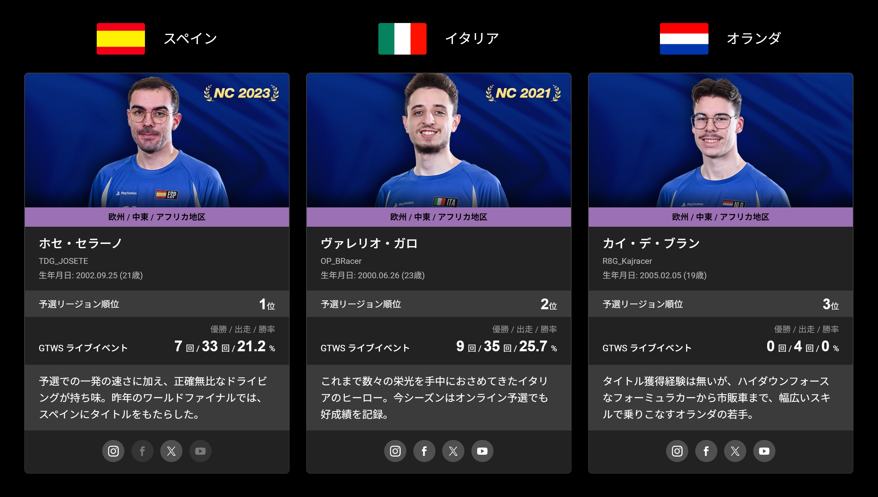 特設サイトでは、今年のワールドシリーズ選抜選手・チームのプロフィール情報や、今大会のレースストラクチャー情報、そして現地からのライブ配信スケジュール(公式YouTubeチャンネル「GRAN TURISMO TV」および「グランツーリスモLIVE」にてお届け)を掲載。