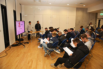 『グランツーリスモSPORT』で味わえるゲーム¬体験の一部をまとめたショートムービーがこちらです。この日のメインイベントとなったのが、「FIA グランツーリスモ チャンピオンシップ プレシーズン テスト」と銘打ったレース対決。この試みは、FIAと「グランツーリスモSPORT」が生み出す新しい選手権「FIA グランツーリスモ チャンピオンシップ」のエキシビジョンマッチで、この戦いに参加するため、ヨーロッパ各国はもちろん、南北アメリカ、日本から計32名の「グランツーリスモ遣い」が集結しました。山内のプレゼンテーションの最中、各選手は控室でドライバーズブリーフィングに耳を傾けます。