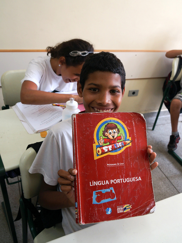 セナ財団のプログラムではひとりでも多くの子供たちに「生きて行くためのスキル」を学んでもらうこと。その中心となる教育は子供たちの識字率を上げることです。設立以来、財団がサポートする学校はブラジル国内でおよそ25%の都市に広がり、1700万人の子供たちに直接、教育の機会を設け、75万人の教師にその教育プログラムを実施してきました。セナ財団がサポートする学校では、セナ財団が作成したカリキュラム、教科書に沿って教育が行われます。