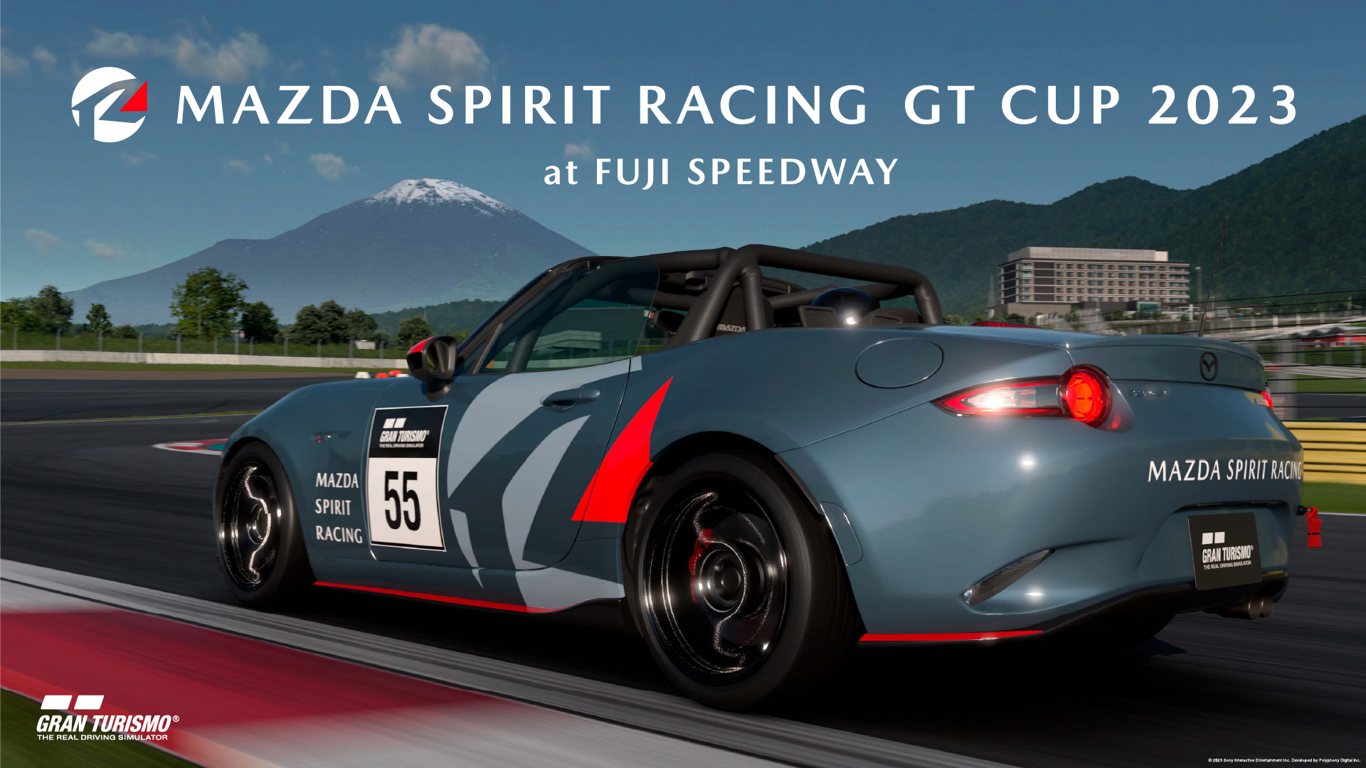 このほかにも、9月の「MAZDA FAN FESTA 2023 at FUJI SPEEDWAY」および11月の「MAZDA FAN FESTA 2023 in OKAYAMA」のイベント内にて、特設の『グランツーリスモ7』ブースを設置し、「MAZDA SPIRIT RACING GT CUP 2023」としてオフライン大会を開催予定。各会場でも、上位入賞者で普通自動車免許を取得済みの方にリアルモータースポーツへの挑戦の機会が提供されます。