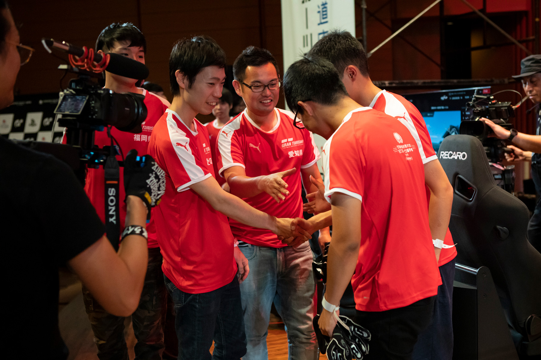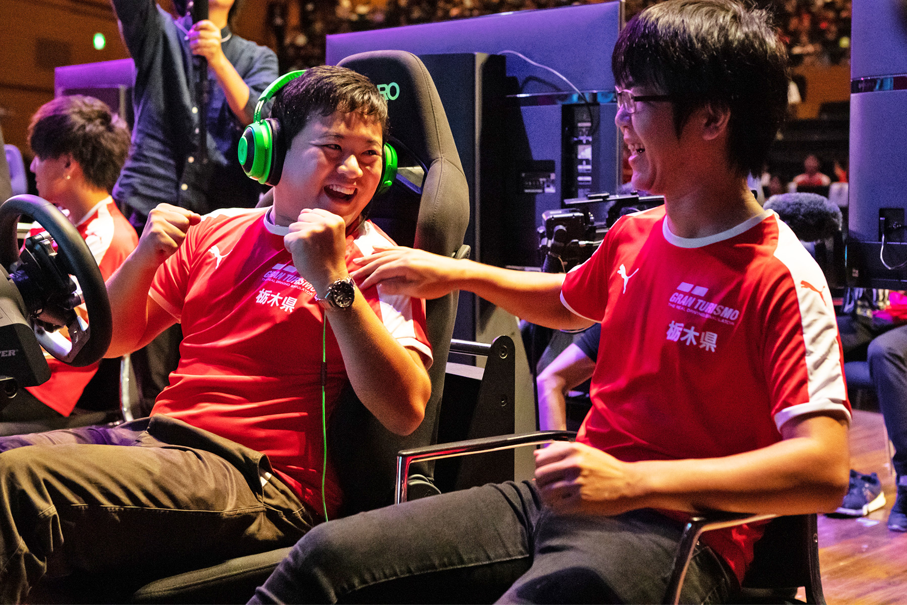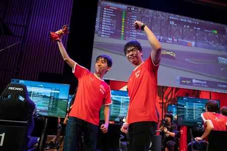 続いて行われた一般の部の決勝レースは、ドライバー交代とタイヤ使用義務ありの12チームによるチーム戦。レースはワールドツアーの常連らによる混戦となり、さしずめ「ワールドツアー第5戦 in 東京モーターショー」の前哨戦のような戦いに。トップランカーらしい激闘に次ぐ激闘、そして幾多の波乱を経て、最終的にトップチェッカーを受けたのはワールドツアーの常連である山中智瑛選手と、アジアチャンピオンシップ出場やGTアカデミー経験者の高橋拓也選手とのタッグチームである栃木県。ふたりは優勝を決めた瞬間、喜びを爆発させました。