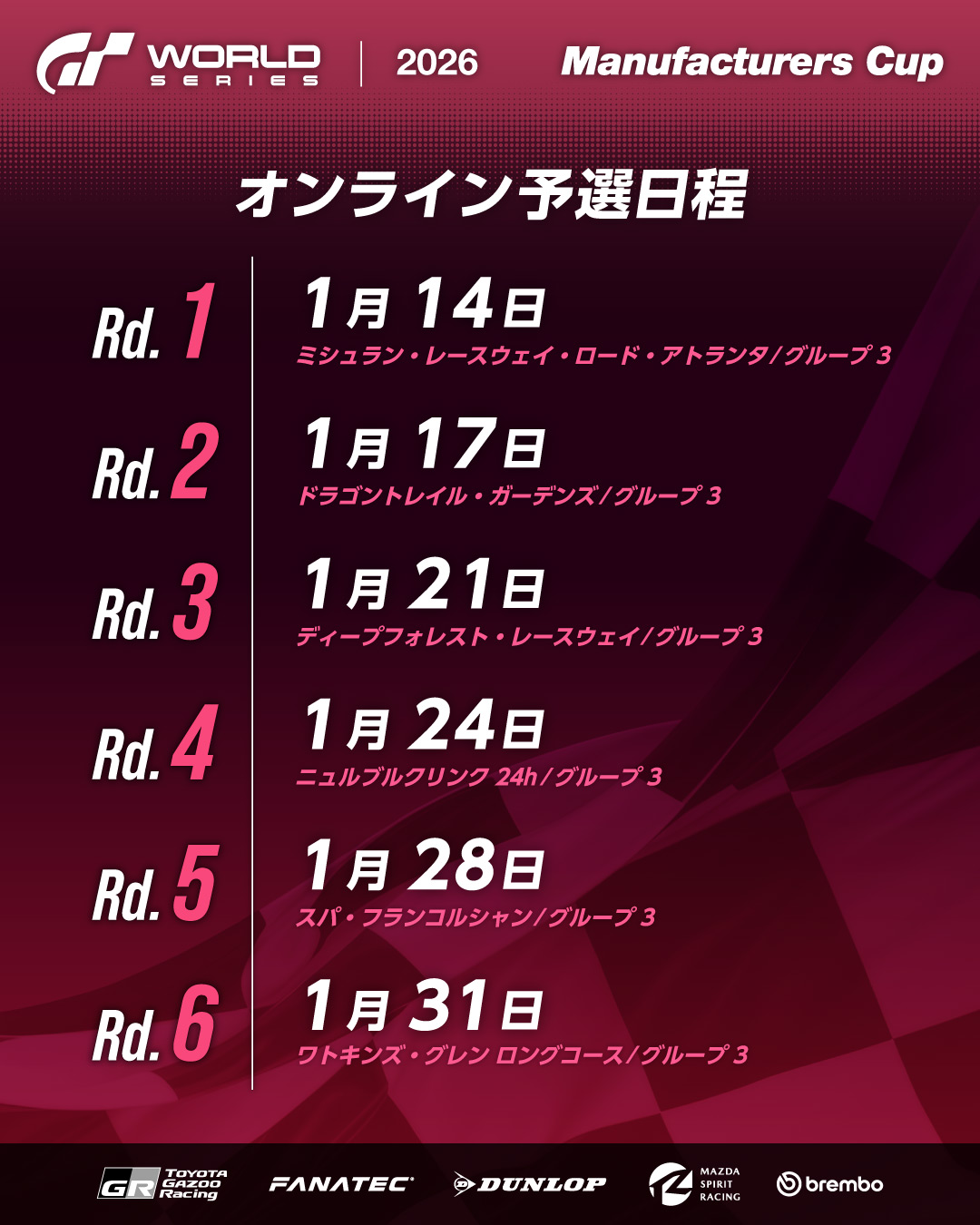 「GTワールドシリーズ 2026 オンライン予選 – マニュファクチャラーズカップ」の各ラウンド情報を公開