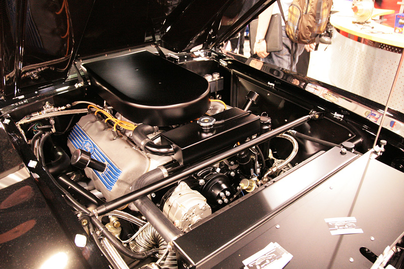 この受賞車がこの世に生まれたきっかけは、オーナーのフィル氏がカリフォルニアのとあるフォードの部品倉庫で、1機のエンジンを見つけたことに始まります。そのエンジンとは1965年製「427ci(6672cc) Ford V8 SOHC "SOCC(ソック)"」。'60年代のNASCARで、フォードがクライスラー勢の誇るHEMI(半球型燃焼室エンジン)軍団を迎え撃つために生み出した珠玉のレーシングエンジンですが、NASCARのレギュレーション変更によって転用・散逸を余儀なくされ、もはやこの世に新品は現存しないといわれてきました。