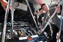 そのため受賞車は外観こそ'70年式マスタングですが、中身は最新のテクノロジーをまとった世界に1台だけのスーパーカー。軽量なパイプフレームの骨格は、なんとサイドシルにエキゾーストパイプを内包するというこだわりようで、美しい外皮はFRP製。ドライブトレインやブレーキ、サスペンションにはレーシングスペックの一級品が用いられています。