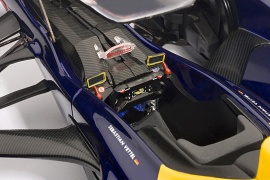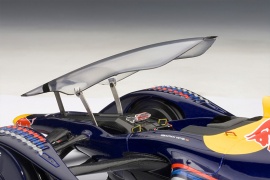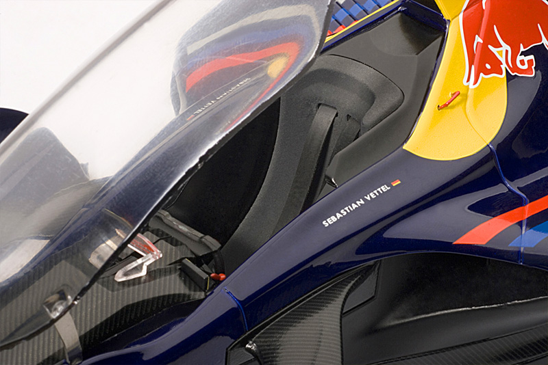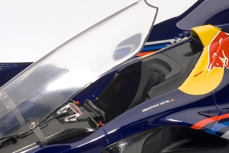 オートアートは、このクルマを1/18の精密ダイキャストモデルとして忠実に再現。レッドブル X2010の圧倒的な高性能が感じとれるような1台に仕上げました。コックピットを覆うキャノピーは開閉が可能、「S.ベッテル」仕様のカラーリングも美しくレイアウトされています。