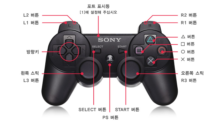 - 게임 종료 / 진동 기능 ON/OFF : PS 버튼