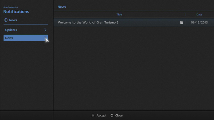 메시지를 확인하려면 "PSN"에 로그인한 후, 그란 투리스모 6를 기동해 주십시오. 자시한 내용은 본 매뉴얼의 "커뮤니티"에서 "메시지" 페이지를 참조하여 주십시오.