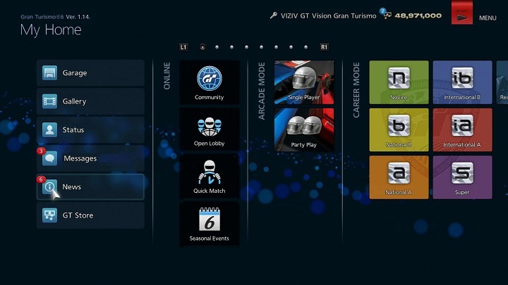 뉴스를 확인하려면 "PSN"에 로그인한 상태에서 그란 투리스모 6를 기동하여 주십시오. 자세한 내용은 본 매뉴얼의 "커뮤니티" 항목에서 "뉴스"를 선택하여 주십시오.