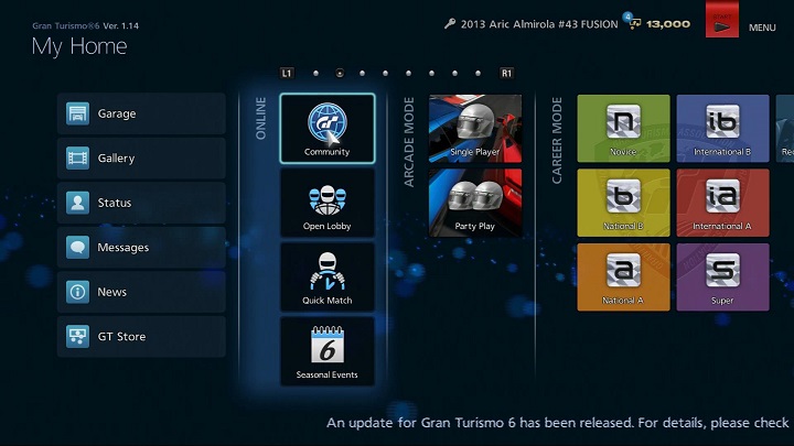 - 업데이트와 점검 등의 그란 투리스모 관련 정보를 확인할 수 있습니다.