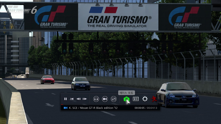 레이스 포토를 촬영하려면 레이스를 마친 후 퀵 메뉴에서 "리플레이"를 선택하거나 마이 홈의 갤러리에서 "리플레이"에 저장된 리플레이를 선택하여 재생해 주십시오.
