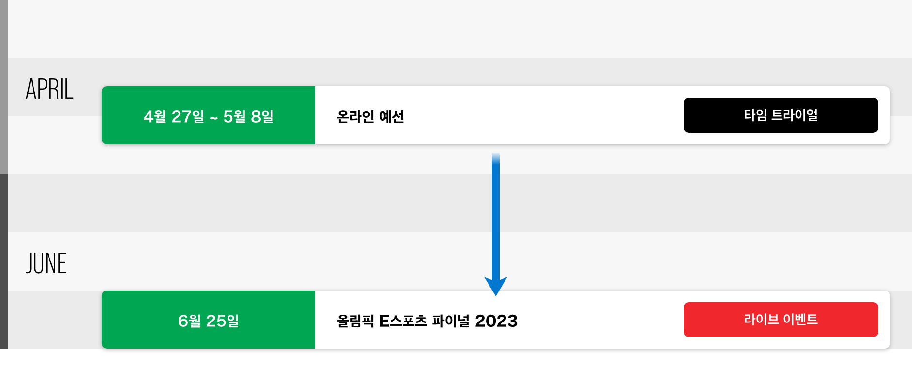 온라인 예선의 상위자는 싱가포르에서 개최되는 올림픽 e스포츠 위크 2023에 초대되어, 파이널 2023의 출전권을 걸고 경쟁합니다.
