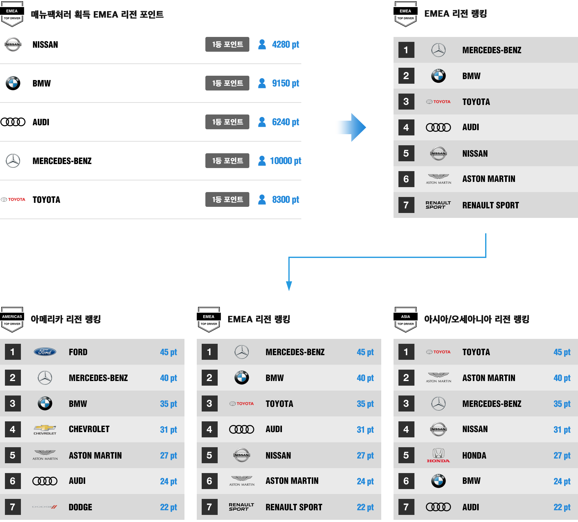 각 3 리전의 매뉴팩처러가 획득한 점수는 글로벌 매뉴팩처러 랭킹에는 합산됩니다.