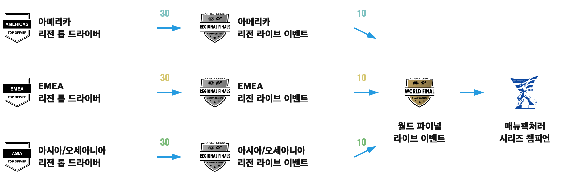 2018 챔피언십은 3 리전으로 개최됩니다.